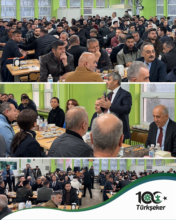 TÜRKŞEKER Genel Müdürü Dr. Muhiddin ŞAHİN’in ev sahipliğinde gerçekleşen iftar programına; Genel Müdür Yardımcıları, Daire Başkanları, Şeker-İş Sendikası Genel Başkanı İsa GÖK ve yönetim kurulu üyeleri ile çok sayıda fabrika çalışanı katıldı. Samimi bir atmosferde geçen programda, kurumun 100. yıl vizyonu ve son yıllardaki istihdam başarısı vurgulandı.