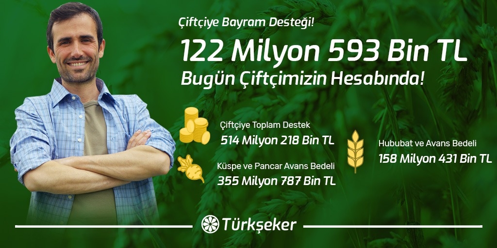 Hazine ve Maliye Bakanı Berat ALBAYRAK, TÜRKŞEKER’in Ağustos ayı sonunda ödemesi gereken 122 Milyon 593 Bin TL avans bedelinin bugün pancar çiftçisinin hesabına geçeğini ve toplamda küspe bedelleri dâhil 355 Milyon 787 Bin TL’nin bu yıl ödenmiş olacağına vurgu yaptı.