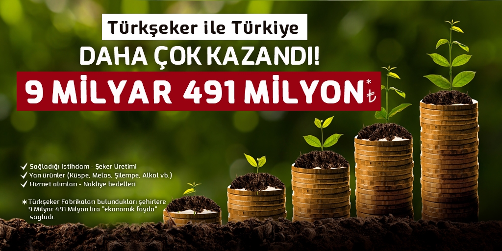 Türkşeker, bu dönemde 15 şeker fabrikasıyla 9 Milyar 491 Milyon lira “ekonomik fayda” oluşturarak ekonomiye büyük bir katkı sağlamış oldu. Türkşeker; sağladığı istihdam, ürettiği şeker, yan ürünler, hizmet alımları ve nakliye bedelleri ile faaliyette bulunduğu şehirlere büyük bir “ekonomik fayda” sağladı.