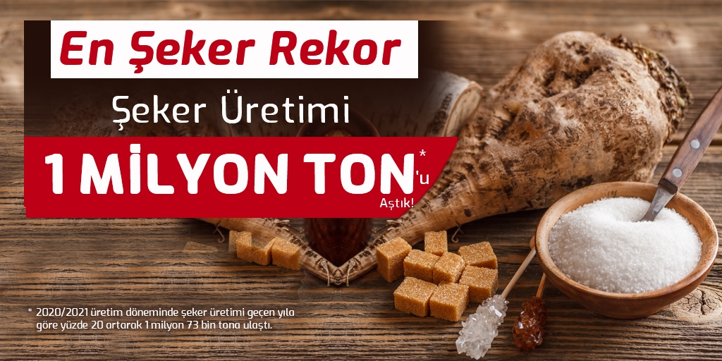 Türkşeker, bu dönemde planlı üretime geçildikten sonraki tüm zamanların pancar işleme ve şeker üretim rekoruna imza attı. 2020/2021 üretim döneminde şeker üretimi geçen yıla göre yüzde 20 artarak 1 milyon 73 bin tona ulaştı.