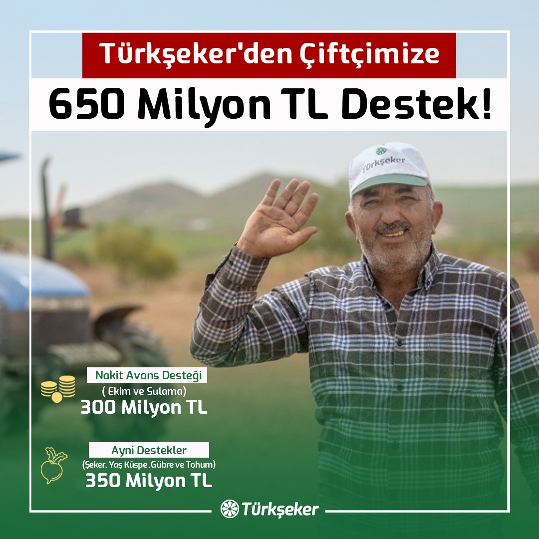 Türkşeker’in 25 Ağustos Çarşamba günü pancar çiftçimizin hesabına yatırdığı 140 Milyon TL sulama avansı ile birlikte toplamda çiftçimize verilen destek 650 Milyon TL oldu.